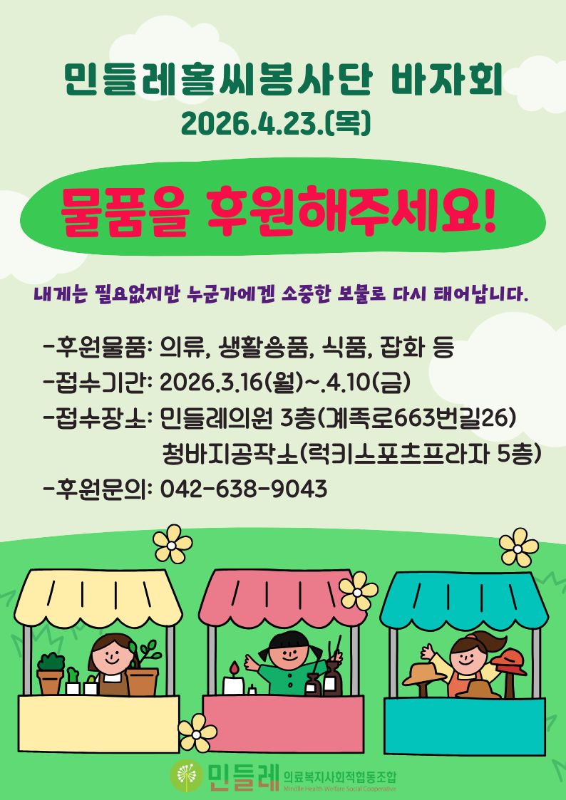 작성자 민들레의료복지사회적협동조합(mindlle) 작성일 2026-03-16 조회수 85