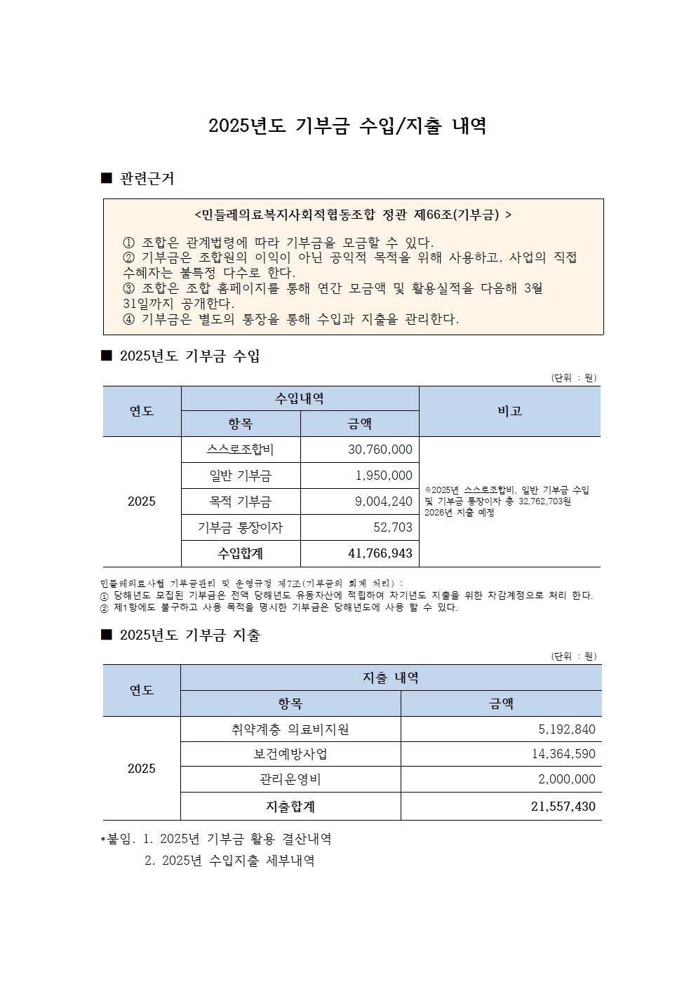 2025년 기부금 수입지출내역 보고