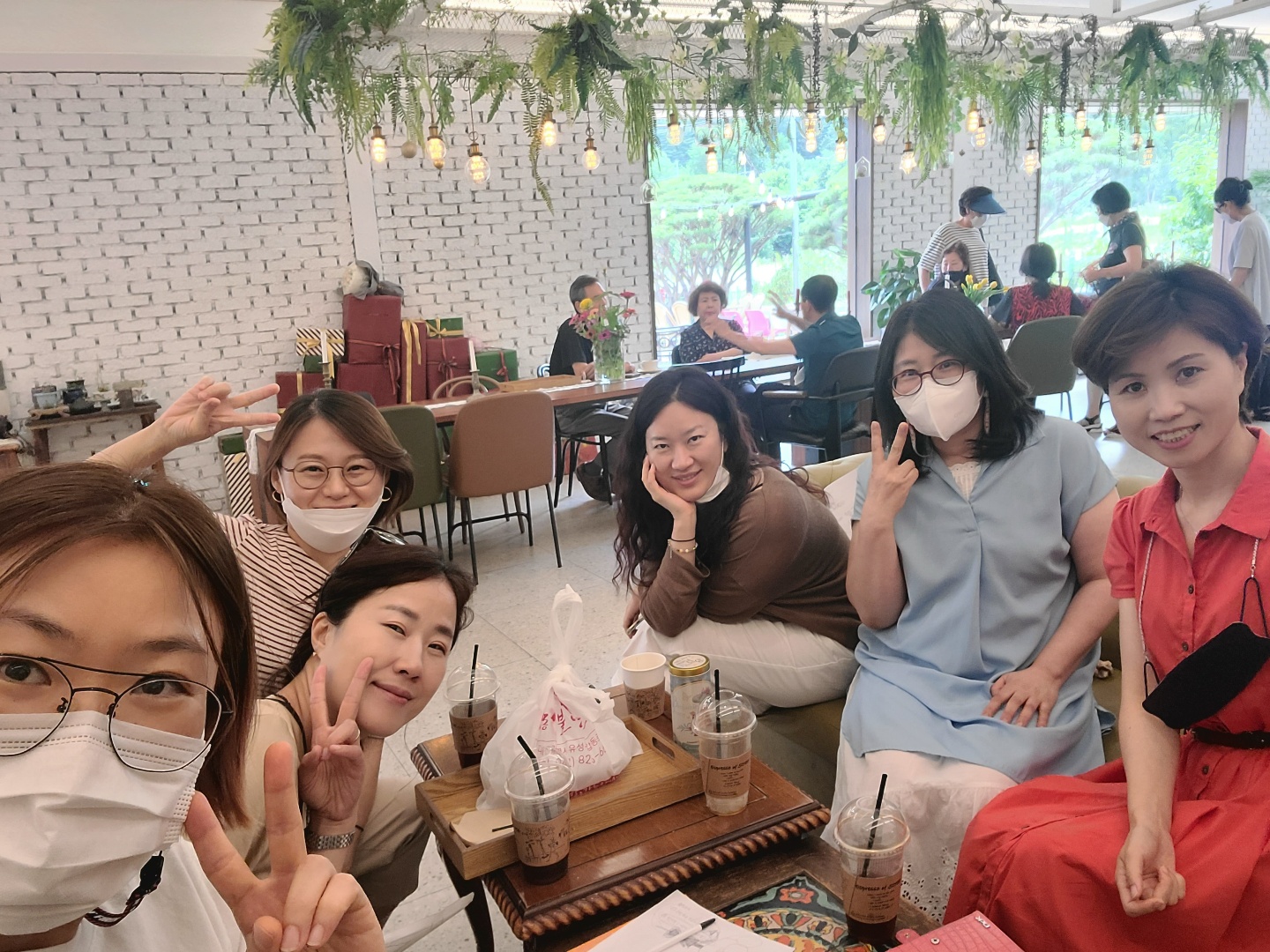 코로나4단계로 모임이 어려워 서로 안부, 근황 물으며 진행