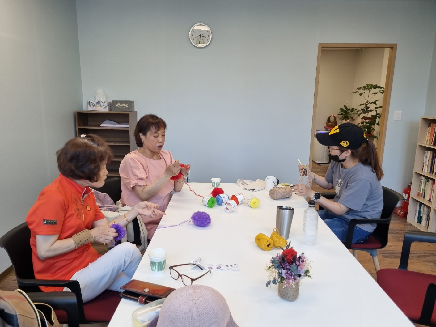 1.각자 손뜨게 하고 싶은 것을 정하고 손뜨게를 하다. 2. 손뜨게 하면서 일상의 나눔과 그 안에서 힘들었던 부분들을 털어놓기를 하며 위로하는 시간을 갖다.